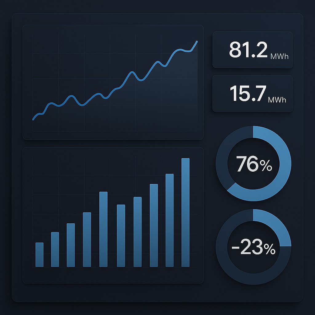Система представляє дані у вигляді динамічних інтерактивних графіків та діаграм, що дозволяють миттєво оцінити ефективність впроваджених заходів. Наочно відстежуйте терміни окупності інвестицій, динаміку скорочення витрат на енергоносії та зменшення викидів CO₂ у реальному часі. Інтуїтивно зрозумілі кольорові індикатори та порівняльні шкали допомагають швидко інтерпретувати дані навіть без спеціальних знань.